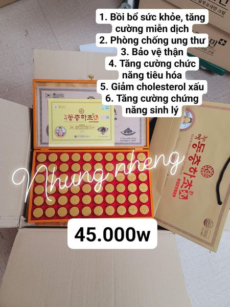 ⛔Viên Đông Trùng Hạ Thảo Hàn Quốc Loại Hộp Gỗ 60 Viên là viên uống đặc biệt có tác dụng tốt cho sức khỏe. Theo các cuốn sách cổ, Đông Trùng Hạ Thảo Hàn Quốc có vị ngọt, tính ấm vào hai kinh thận và phế, có công năng dưỡng phế, bổ thận, ích tinh được dùng để trị phế hư khái xuyễn, thận suy dương nuy (liệt dương), di tinh, lưng đau gối mỏi.